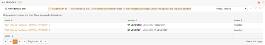 After completing the process, you will now have 2 awarded tenders with the same name but different awarded vendors