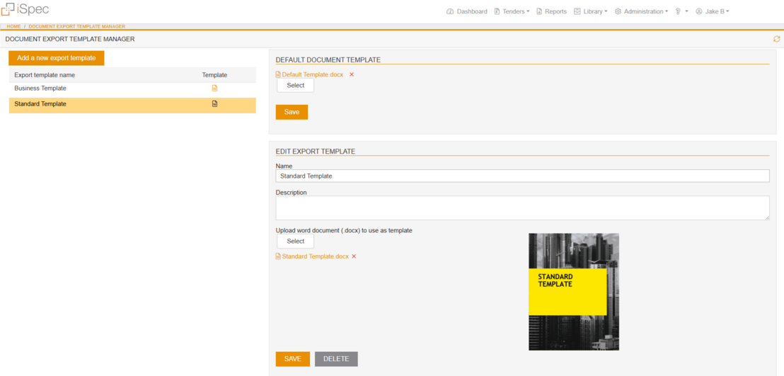 This feature allows internal users to standardize and customize the layout of exported documents. Users can utilize the Default Template for quick and consistent exports