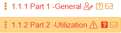 The image below illustrates the notification for non-compliant item submissions. A red square with a question mark identifies items that require attention. Once an internal user accepts the submission, this icon transitions to an unshaded orange square, indicating the non-compliant item has been accepted.