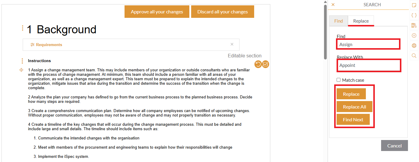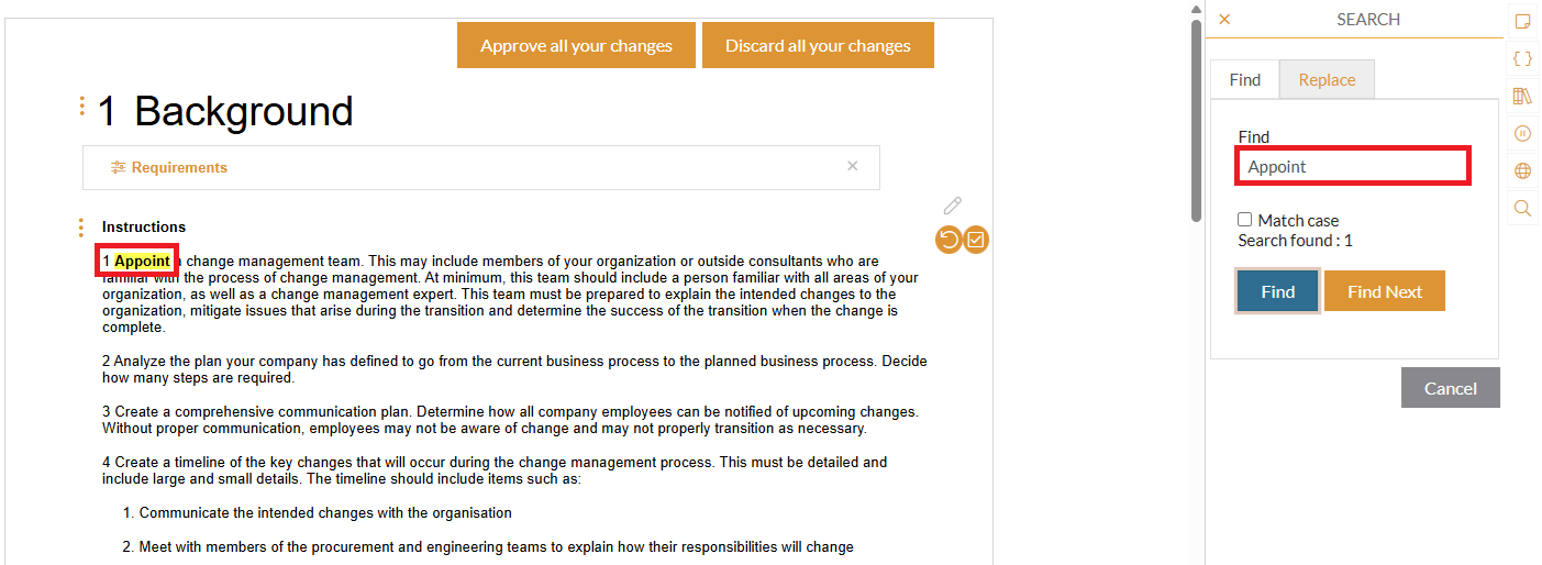 To use this feature, simply open the Find and Replace in the section tool, enter the word or phrase you want to find.
